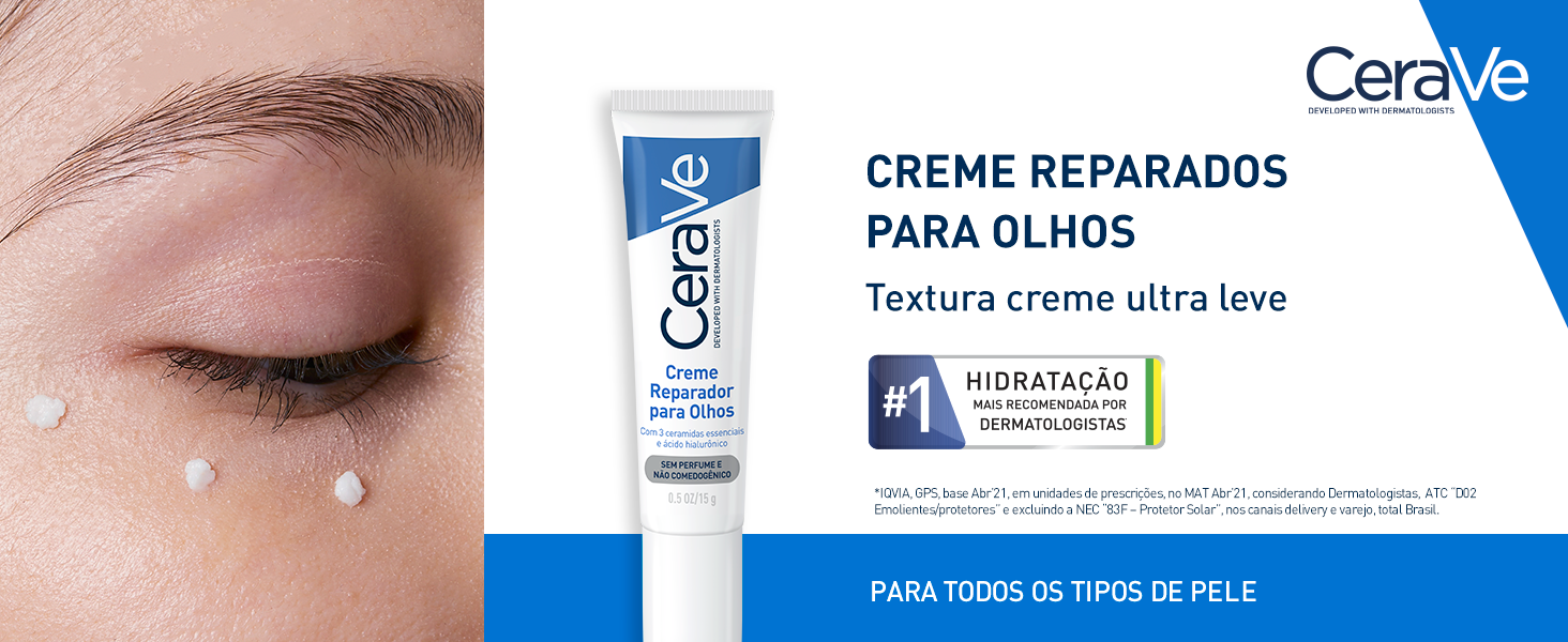 Detalhes: Desenvolvido com dermatologistas*, o Creme Reparador para Olhos hidrata de forma eficaz e ajuda a restaurar a barreira protetora ao redor dos olhos. Possui uma textura leve e fluida que penetra rapidamente na pele. Enriquecido com 3 ceramidas e ácido hialurônico, este tratamento para o contorno dos olhos ajuda a reduzir o aparecimento de olheiras e bolsas nos olhos. Aplicar em pequenos pontos ao redor da área dos olhos suavemente até que seja totalmente absorvido. Use sozinho ou sob a maquiagem duas vezes ao dia, na parte da manhã e da noite. Evitar o contato direto com os olhos. Em caso de contato com os olhos, enxaguar abundantemente com água. CeraVe Creme Reparador para Olhos apresenta um complexo marinho e botânico para ajudar a iluminar toda a área dos olhos. Adequado para todos os tipos de pele, possui fórmula não oleosa, de rápida absorção e sem fragrância. Também contém três ceramidas essenciais, ácido hialurônico e niacinamida para ajudar a acalmar, hidratar e restaurar a barreira protetora natural da pele, além da tecnologia patenteada MVE que libera os ativos de forma prolongada para uma ação duradoura. Reduz a aparência de olheiras e bolsas nos olhos; Textura leve e fluida de rápida absorção; Apropriado para todos os tipos de pele; Não comedogênico, sem fragrância; Testado por oftamologistas para segurança; Desenvolvido com dermatologistas. Principais Ativos: -Tecnologia MVE: liberação prolongada de ativos para hidratação o dia todo; -Ceramidas: rastaura e mantem a barreira protetora natural da pele; -Ácido hialurônico: ajuda a reter a hidratação natural da pele; -Niacinamida: ajuda a acalmar a pele; *CeraVe: Desenvolvido com Dermatologistas. Produto foi desenvolvido com base em informações e necessidades indicadas por dermatologistas. Em 2005, os dermatologistas da CeraVe desenvolveram uma linha de produtos para a pele enriquecidos com uma mistura de três ceramidas essenciais (ceramidas 1, 3 e 6-II), ácidos graxos e outros lipídios para ajudar a reparar e fortalecer a barreira natural da pele. Atualmente, a CeraVe oferece mais de 70 produtos desenvolvidos para hidratar, restaurar e reabastecer todos os tipos de pele. Aplicar generosamente nos pés sempre que necessário. Esfoliação e hidratação são essenciais para pés suaves e macios. Recomendamos um creme para os pés com ácido salicílico, como o Creme Renovador de Pés CeraVe, que ajuda a eliminar o acúmulo de células mortas e proporciona uma hidratação duradoura. Ingredientes adicionais como ácido hialurônico, retém a umidade, e a niacinamida promove uma ação calmante e judam a suavizar a pele áspera. Além disso, a presença das ceramidas repoe as ceramidas naturais da pele para ajudar a manter a hidratação.
